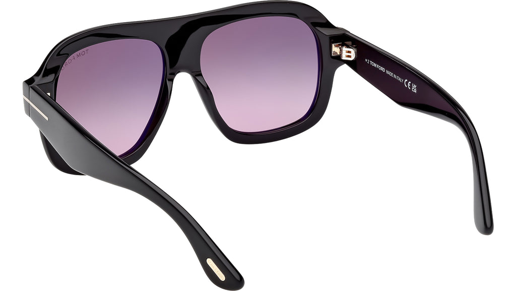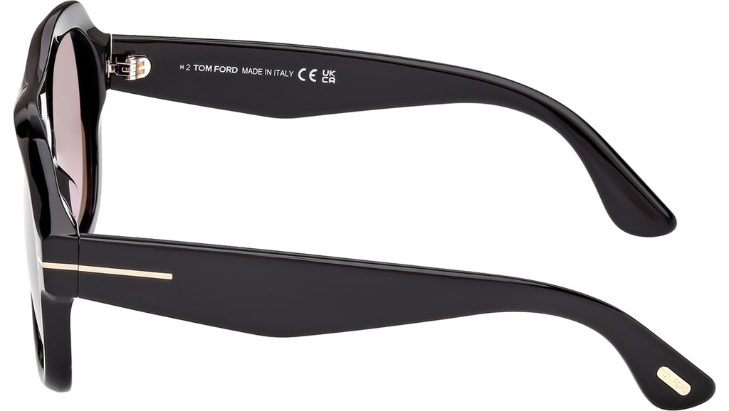 Occhiali da sole Tom Ford donna modello Rhonda-02 FT1324 con montatura navigator full-rim in acetato nero lucido e lenti color grigio fumo sfumato. Codice Brand: 1324. Codice colore: 01B. Rivenditore autorizzato Tom Ford online. Gli occhiali vengono consegnati con custodia e accessori originali e sono coperti da garanzia standard di 12 mesi del produttore.