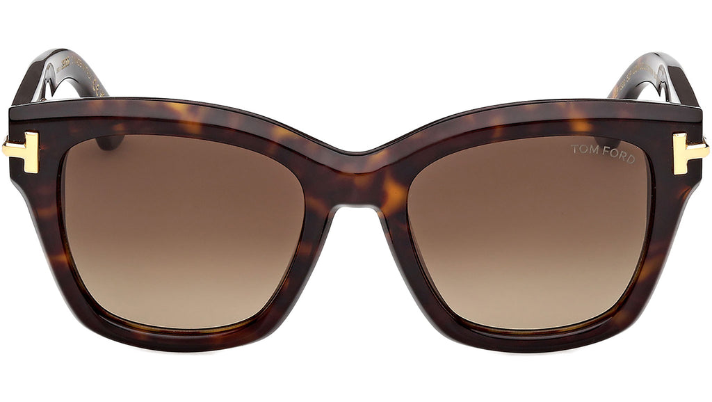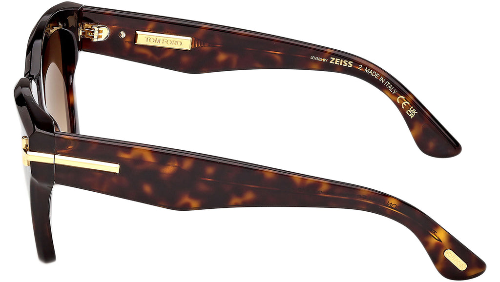Occhiali da sole Tom Ford donna modello Icon FT1329 con montatura a farfalla full-rim in acetato avana scuro e lenti color marrone sfumato. Codice Brand: 1329. Codice colore: 52F. Rivenditore autorizzato Tom Ford online. Gli occhiali vengono consegnati con custodia e accessori originali e sono coperti da garanzia standard di 12 mesi del produttore.
