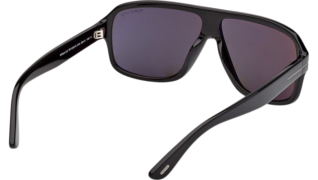 Occhiali da sole Tom Ford uomo modello William-02 FT1335 con montatura navigator full-rim in acetato nero lucido e lenti color grigio fumo. Codice Brand: 1335. Codice colore: 01A. Rivenditore autorizzato Tom Ford online. Gli occhiali vengono consegnati con custodia e accessori originali e sono coperti da garanzia standard di 12 mesi del produttore.