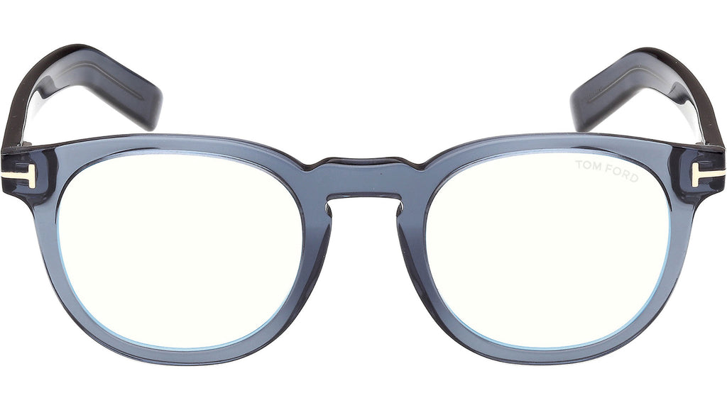 Occhiali da vista Tom Ford uomo modello FT5629-B con montatura rotonda full-rim blu lucido in acetato e lenti demo. Codice Brand: 5629-B. Codice colore: 090. Rivenditore autorizzato Tom Ford online. Gli occhiali vengono consegnati con custodia e accessori originali e sono coperti da garanzia standard di 12 mesi del produttore.