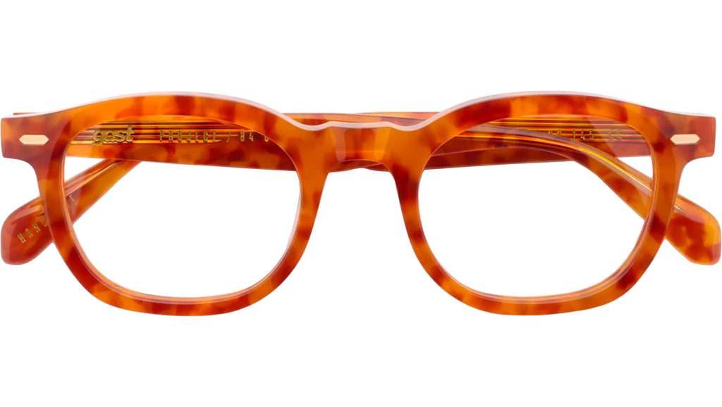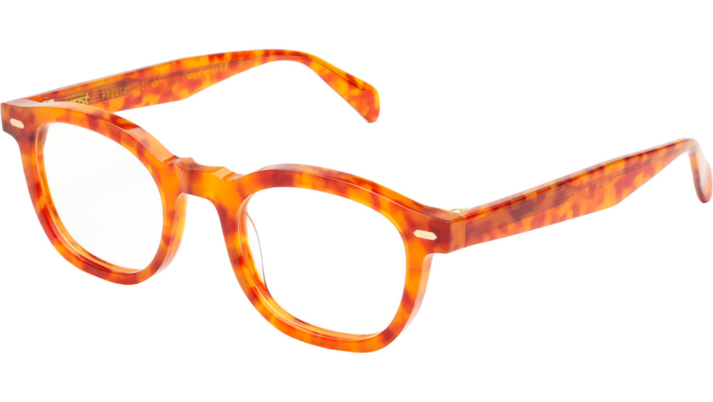 Gast ANIMA Safari. Handmade acetate frame in spotted brown color with demo lenses – Prescription ready. Five barrels metal hinges and custom wire core. Premium hard case and microfiber cleaning cloth.