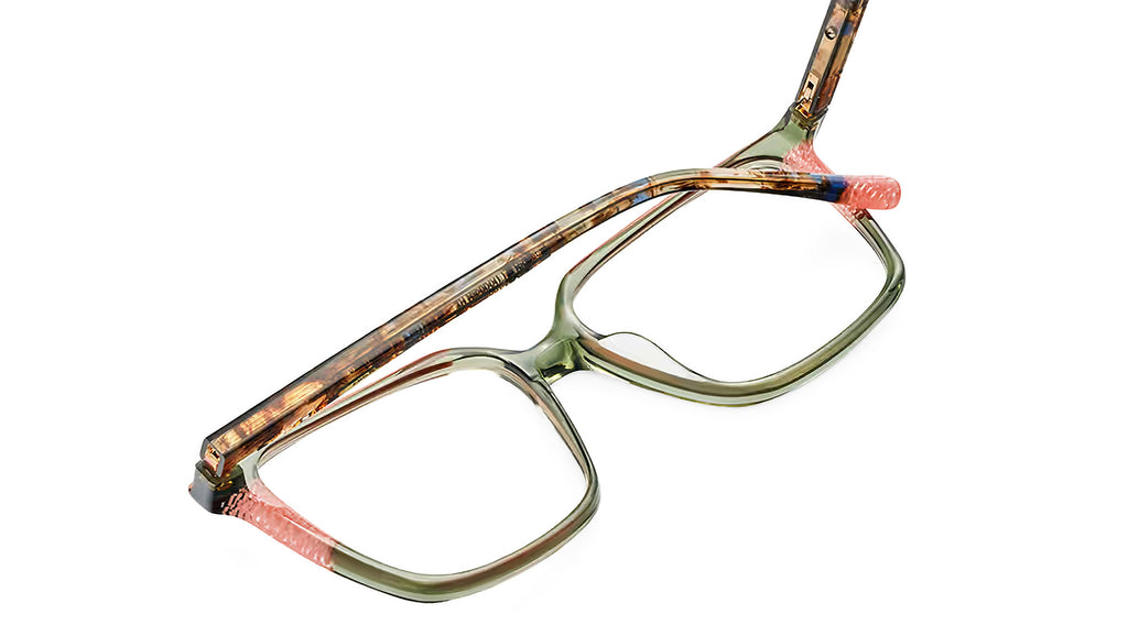 - Colore montatura verde salvia / motivo rosa