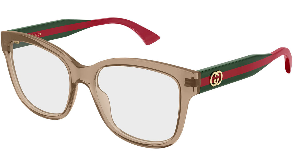 Occhiali da vista Gucci GG0038ONN 005 donna con montatura butterfly in acetato riciclato marrone chiaro trasparente lucido e lenti demo. Linea: Sign. Codice modello: GG0038ONN. Codice colore: 005. Made in Japan. Rivenditore autorizzato Gucci online. Gli occhiali vengono consegnati con custodia e accessori originali e sono coperti dalla garanzia ufficiale di 12 mesi del produttore.