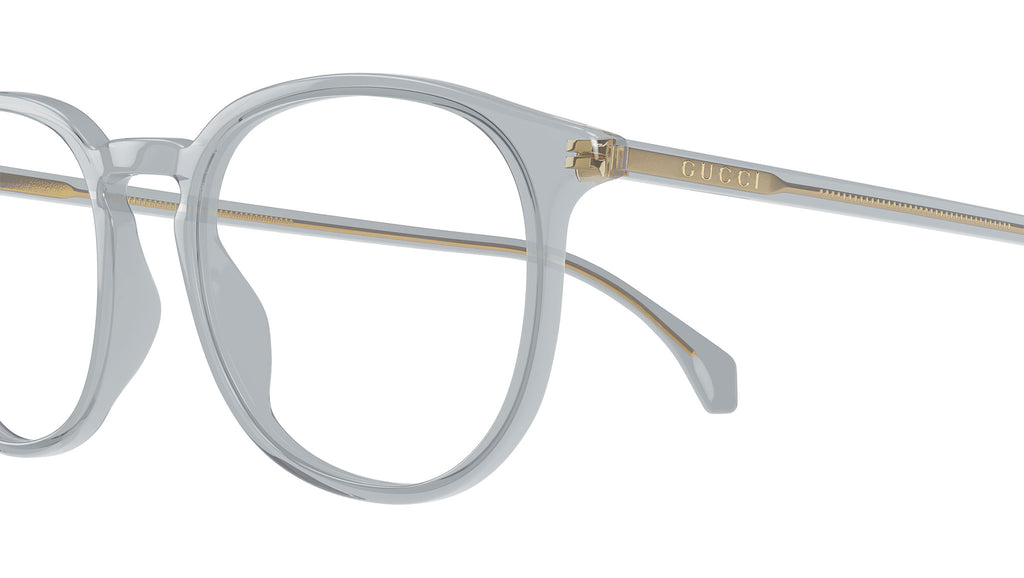 Occhiali da vista Gucci modello GG0551O linea GG Logo in acetato forma pantos codice colore 014 grigio chiaro lattiginoso lucido con aste in grigio e lenti demo. Rivenditore autorizzato Gucci online. Gli occhiali vengono consegnati con custodia e accessori originali e sono coperti dalla garanzia ufficiale di 12 mesi del produttore.
