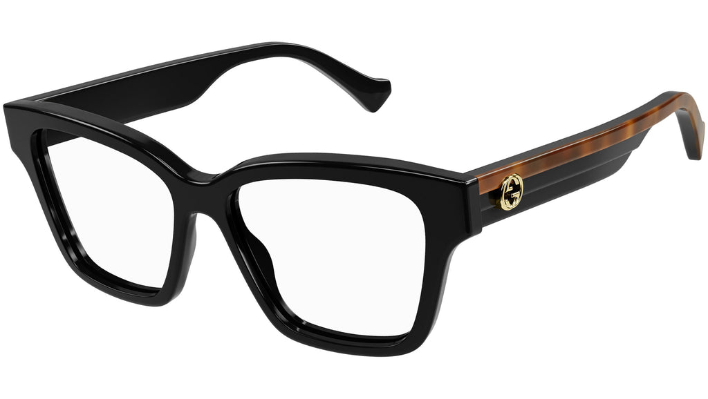 Occhiali da vista Gucci linea Web modello GG1302O variante colore 004 nero lucido tinta unita con astine color tartaruga.