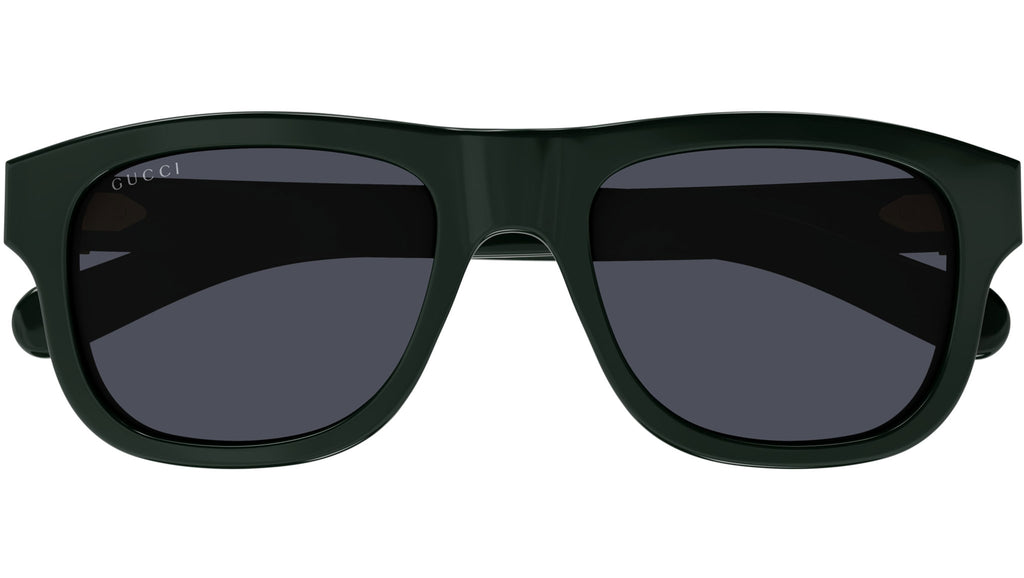 Occhiali da sole Gucci linea Web modello GG1509S pantos in acetato riciclato codice colore 004 verde scuro tinta unita lucido con aste verde e lenti color blu navy solido.