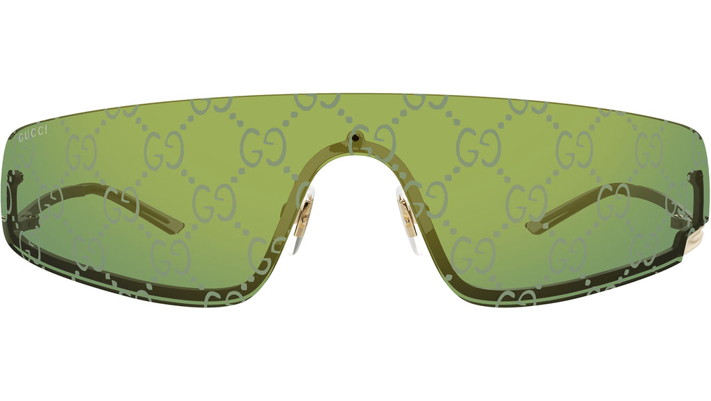 Occhiali da sole Gucci linea Fashion modello GG1561S mascherina in metallo codice colore 003 avorio tinta unita lucido con aste avorio e lenti color verde solido + clichè GG oro.