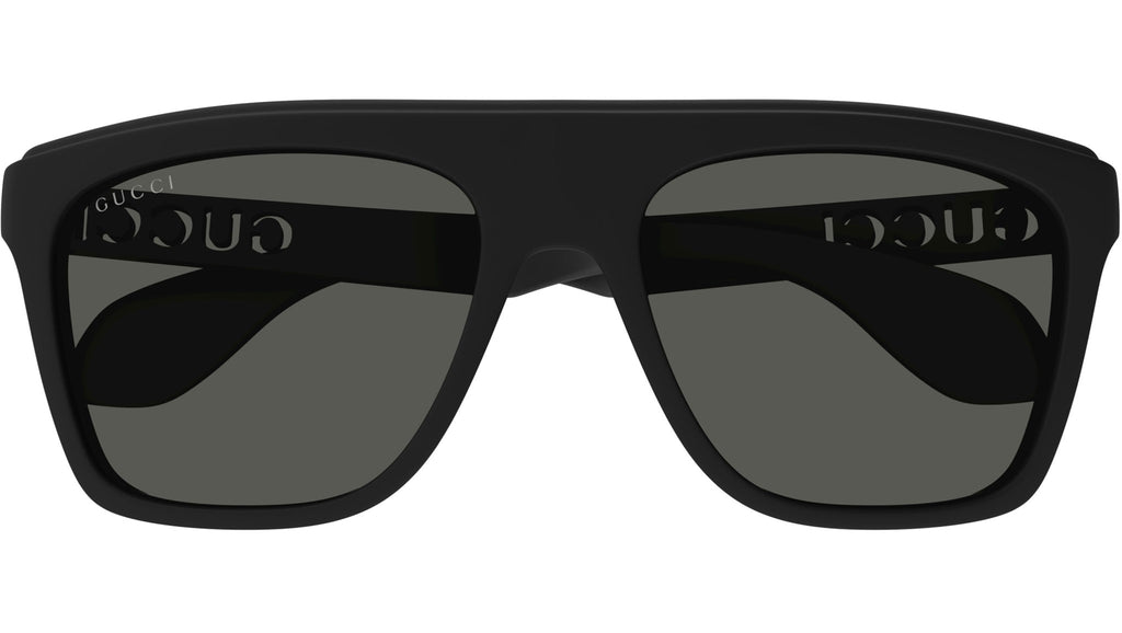 Occhiali da sole Gucci linea Lettering modello GG1570S rettangolari in iniettato codice colore 001 nero opaco con aste nero e lenti color grigio tinta unita.