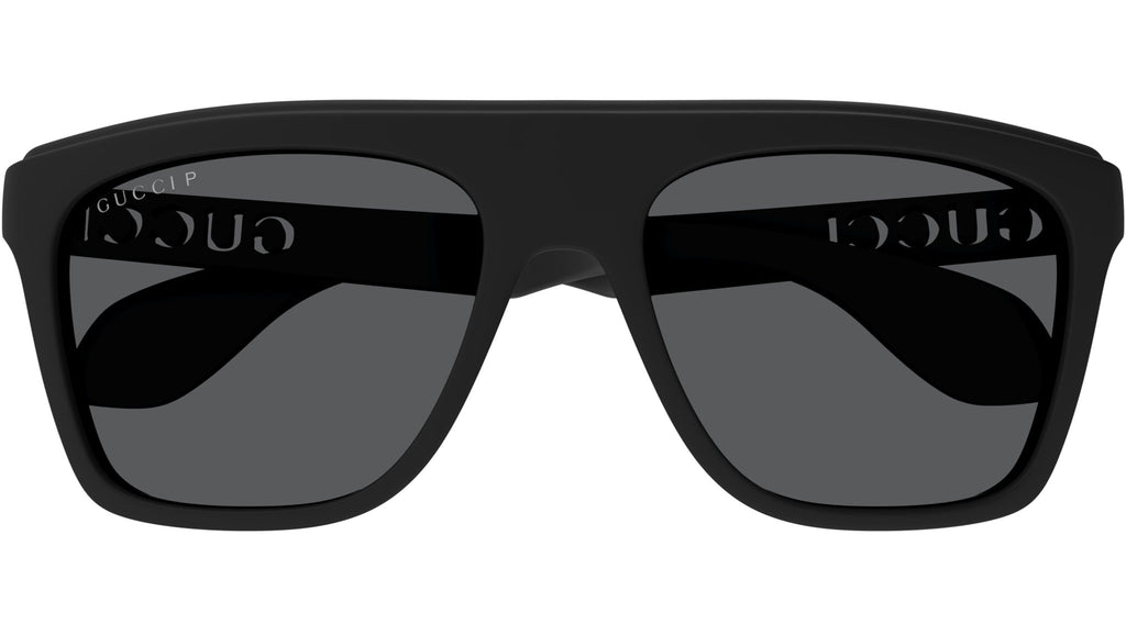 Occhiali da sole Gucci linea Lettering modello GG1570S rettangolari in iniettato codice colore 006 nero opaco con aste nero e lenti color grigio tinta unita.
