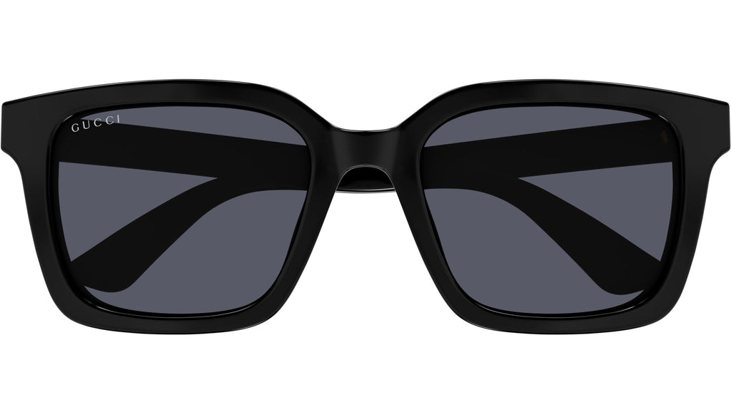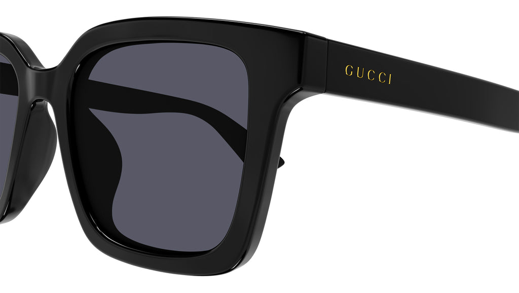 Occhiali da sole Gucci linea Lettering modello GG1582SK rettangolari in iniettato codice colore 001 nero lucido con aste nero e lenti color grigio tinta unita.