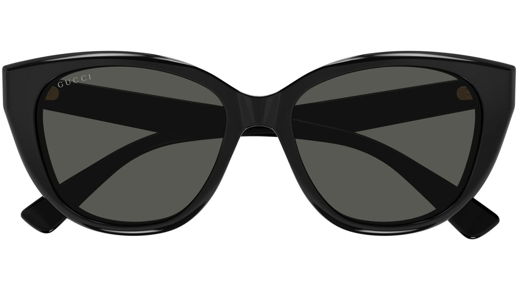 Occhiali da sole Gucci linea Lettering modello GG1588S pantos in acetato riciclato codice colore 001 nero glossy lucido con aste nero e lenti color grigio tinta unita.