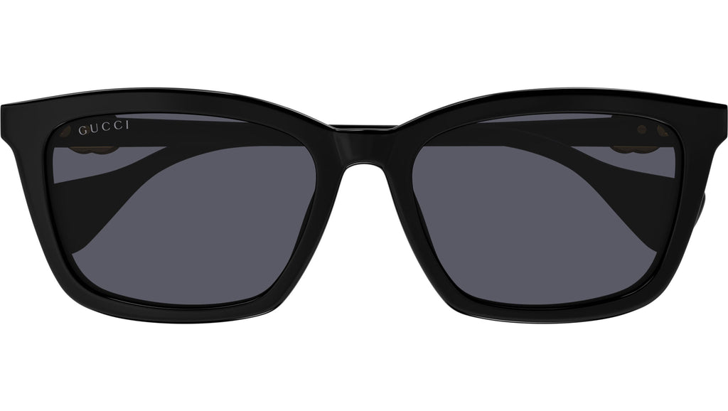 Occhiali da sole Gucci linea GG Logo modello GG1596SK pantos in acetato riciclato codice colore 001 nero lucido con aste nero e lenti color grigio tinta unita.