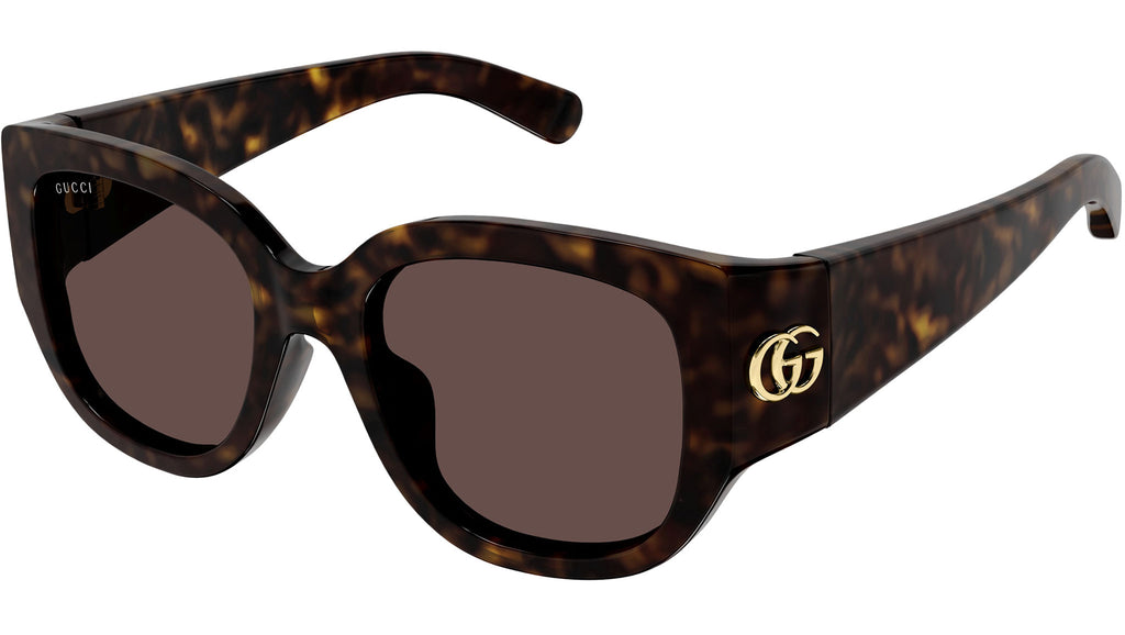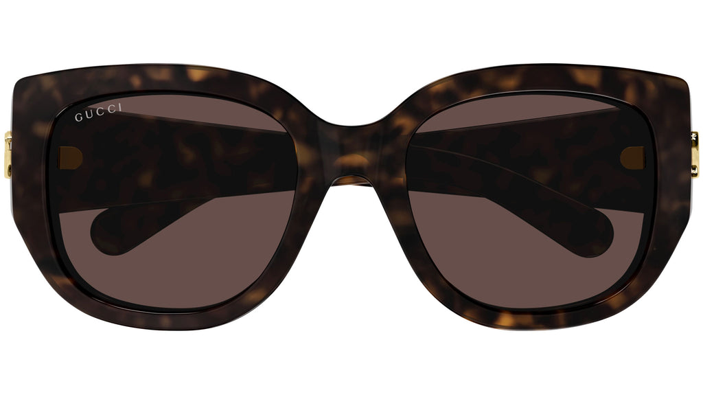 Occhiali da sole Gucci linea GG Logo modello GG1599SA pantos in iniettato codice colore 002 tartaruga scuro lucido con aste tartaruga e lenti color marrone tinta unita.