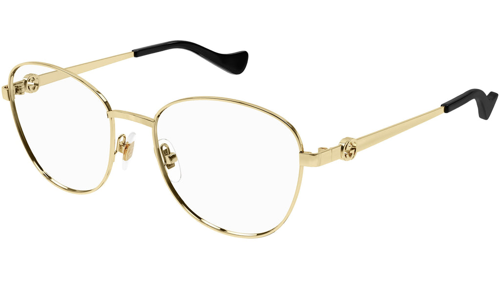 Occhiali da vista Gucci modello GG1601O linea GG Logo in metallo forma pantos codice colore 001 oro endura lucido con aste in oro e lenti demo. Rivenditore autorizzato Gucci online. Gli occhiali vengono consegnati con custodia e accessori originali e sono coperti dalla garanzia ufficiale di 12 mesi del produttore.