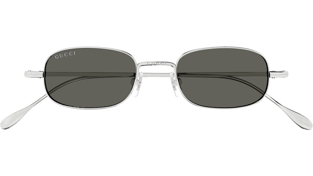 Occhiali da sole Gucci linea Fashion modello GG1648S rettangolari in metallo codice colore 008 argento lucido con aste argento e lenti color grigio tinta unita.