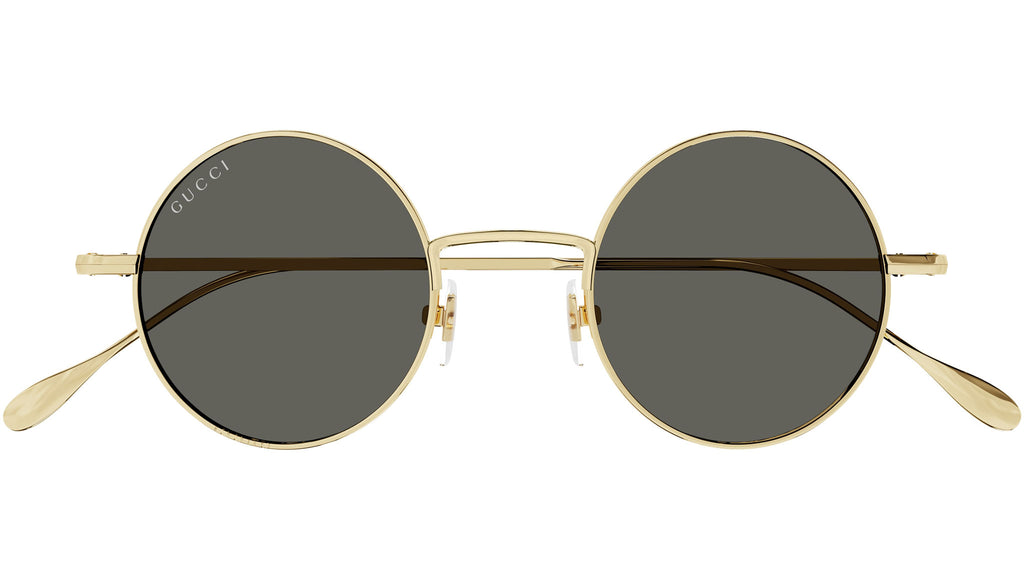 Occhiali da sole Gucci linea Fashion modello GG1649S rettangolari in metallo codice colore 007 oro endura lucido con aste oro e lenti color grigio tinta unita.
