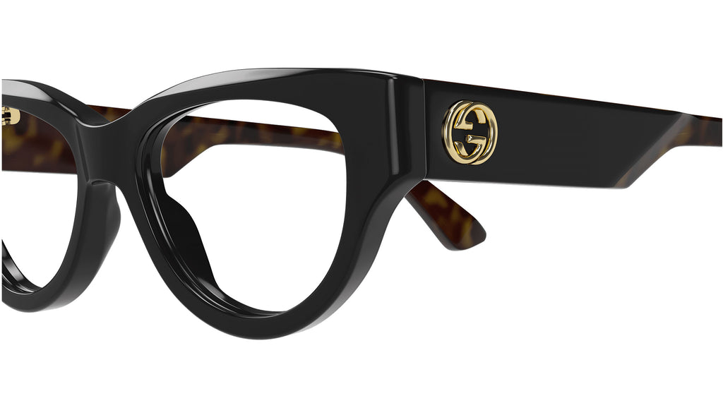 Occhiali da vista Gucci modello GG1665O linea GG Logo in acetato riciclato forma a gatto nero lucido con aste in tartaruga e lenti demo. Rivenditore autorizzato Gucci online. Gli occhiali vengono consegnati con custodia e accessori originali e sono coperti dalla garanzia ufficiale di 12 mesi del produttore.