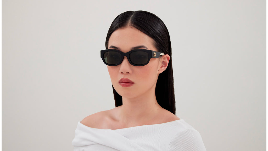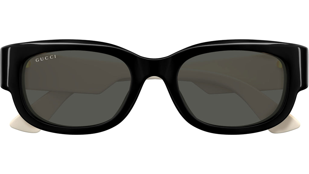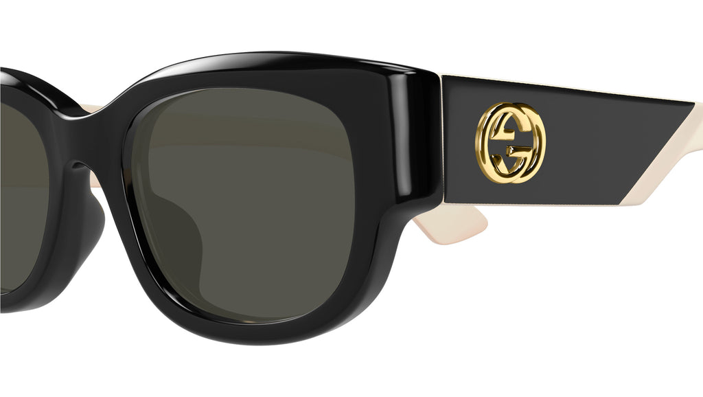 Occhiali da sole Gucci modello GG1667SK linea GG Logo in acetato riciclato forma pantos codice colore 001 nero lucido con aste avorio e lenti grigio tinta unita. Rivenditore autorizzato Gucci online. Gli occhiali vengono consegnati con custodia e accessori originali e sono coperti dalla garanzia ufficiale di 12 mesi del produttore.