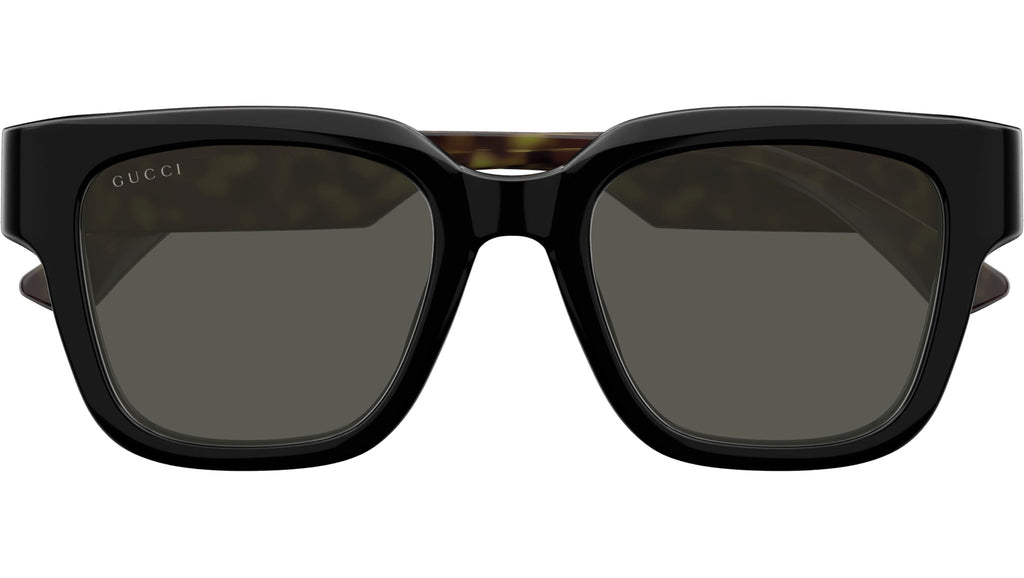 Occhiali da sole Gucci modello GG1670SK linea Lettering in acetato riciclato forma rettangolare codice colore 001 nero lucido con aste tartaruga e lenti grigio tinta unita. Rivenditore autorizzato Gucci online. Gli occhiali vengono consegnati con custodia e accessori originali e sono coperti dalla garanzia ufficiale di 12 mesi del produttore.