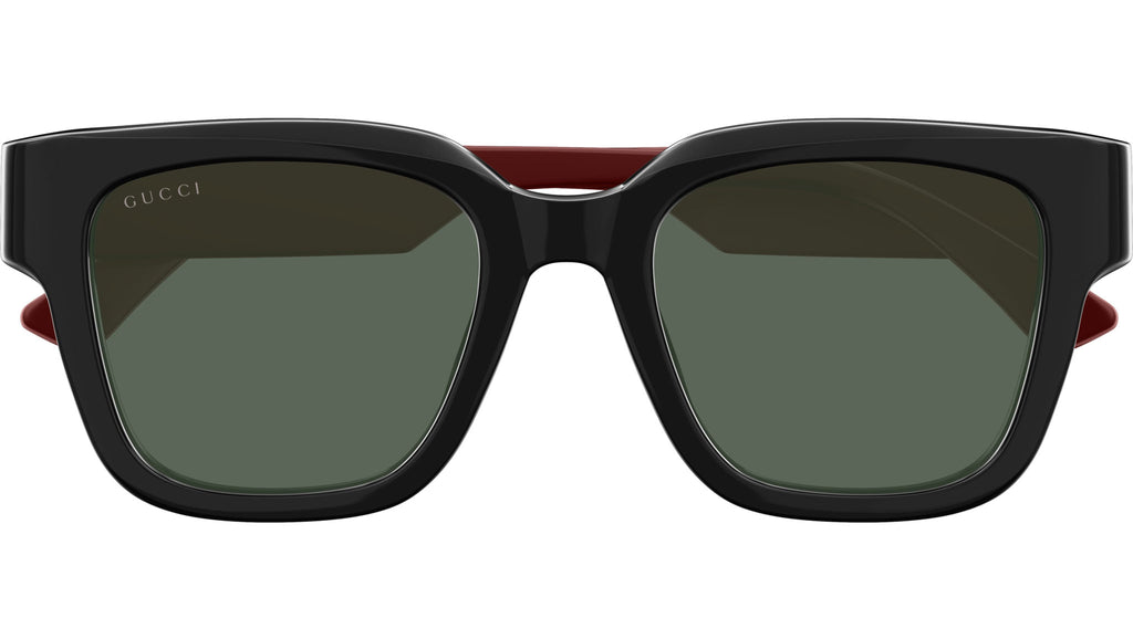Occhiali da sole Gucci modello GG1670SK linea Lettering in acetato riciclato forma rettangolare codice colore 005 nero lucido con aste rosso e lenti verde scuro tinta unita. Rivenditore autorizzato Gucci online. Gli occhiali vengono consegnati con custodia e accessori originali e sono coperti dalla garanzia ufficiale di 12 mesi del produttore.