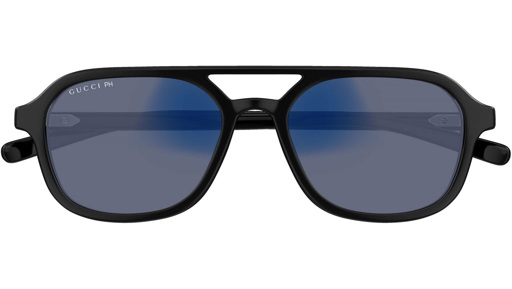 Occhiali da sole Gucci modello GG1673S linea Web in acetato riciclato forma aviatore codice colore 001 nero lucido con aste nero e lenti trasparente fotocromatico a grigio + riduttore luce blu AR. Rivenditore autorizzato Gucci online. Gli occhiali vengono consegnati con custodia e accessori originali e sono coperti dalla garanzia ufficiale di 12 mesi del produttore.