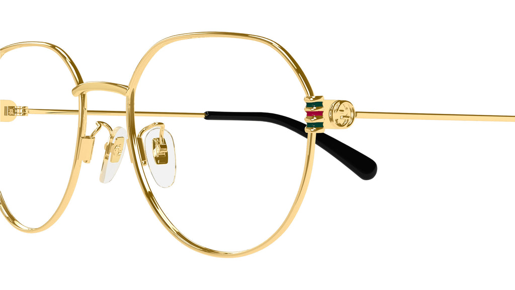 Occhiali da vista Gucci modello GG1675OK linea Fork in metallo forma pantos codice colore 001 oro endura lucido con aste in oro e lenti demo. Rivenditore autorizzato Gucci online. Gli occhiali vengono consegnati con custodia e accessori originali e sono coperti dalla garanzia ufficiale di 12 mesi del produttore.