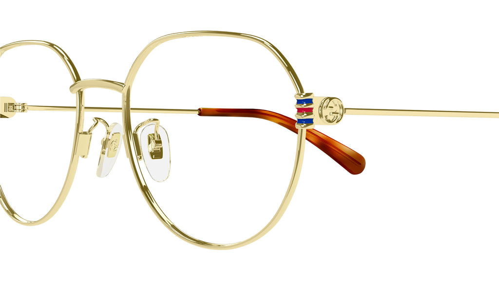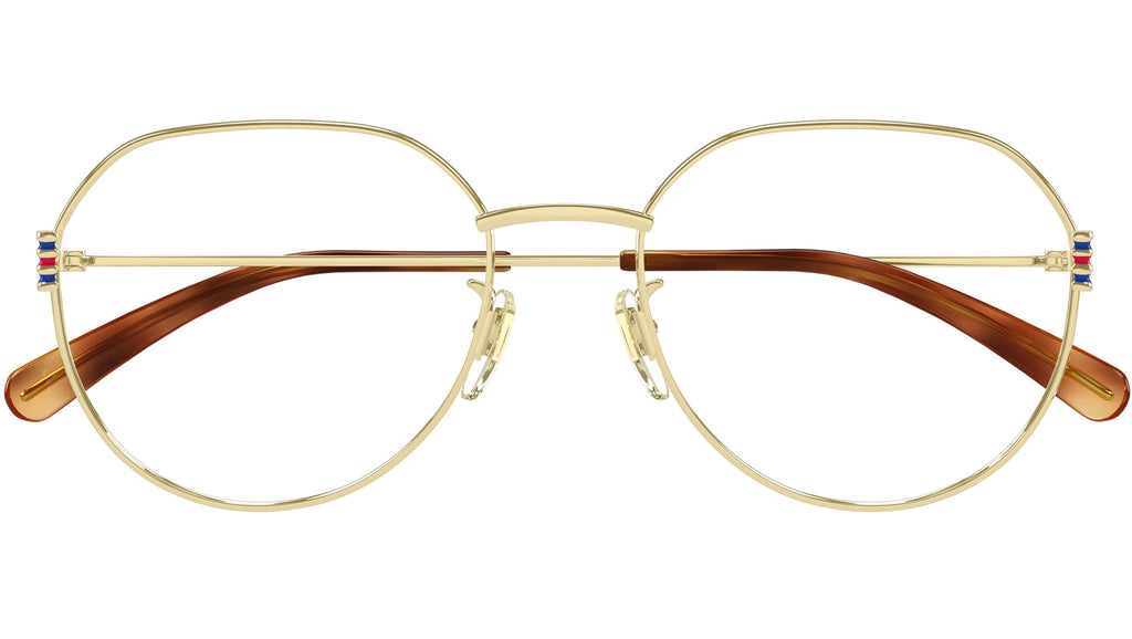 Occhiali da vista Gucci modello GG1675OK linea Fork in metallo forma pantos codice colore 002 oro endura lucido con aste in oro e lenti demo. Rivenditore autorizzato Gucci online. Gli occhiali vengono consegnati con custodia e accessori originali e sono coperti dalla garanzia ufficiale di 12 mesi del produttore.