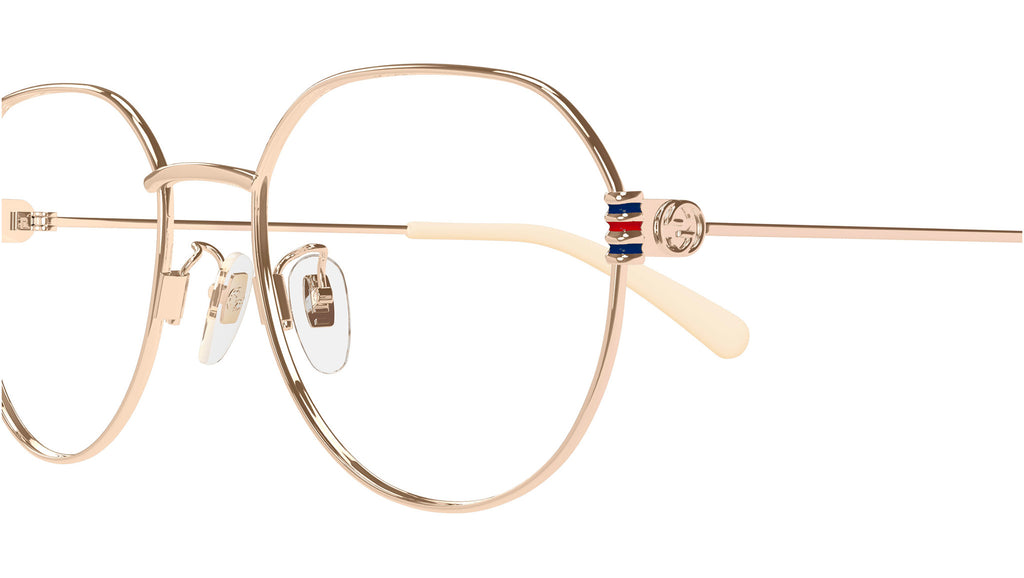 Occhiali da vista Gucci modello GG1675OK linea Fork in metallo forma pantos codice colore 004 oro rosa lucido con aste in oro e lenti demo. Rivenditore autorizzato Gucci online. Gli occhiali vengono consegnati con custodia e accessori originali e sono coperti dalla garanzia ufficiale di 12 mesi del produttore.