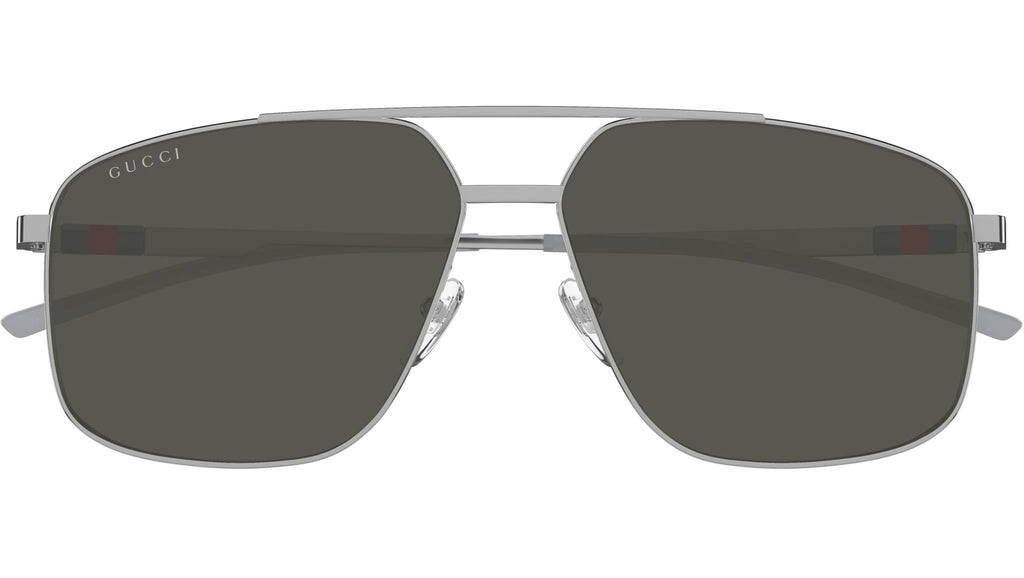 Occhiali da sole Gucci modello GG1676S linea Web in metallo forma aviatore codice colore 001 argento lucido con aste argento e lenti grigio tinta unita. Rivenditore autorizzato Gucci online. Gli occhiali vengono consegnati con custodia e accessori originali e sono coperti dalla garanzia ufficiale di 12 mesi del produttore.