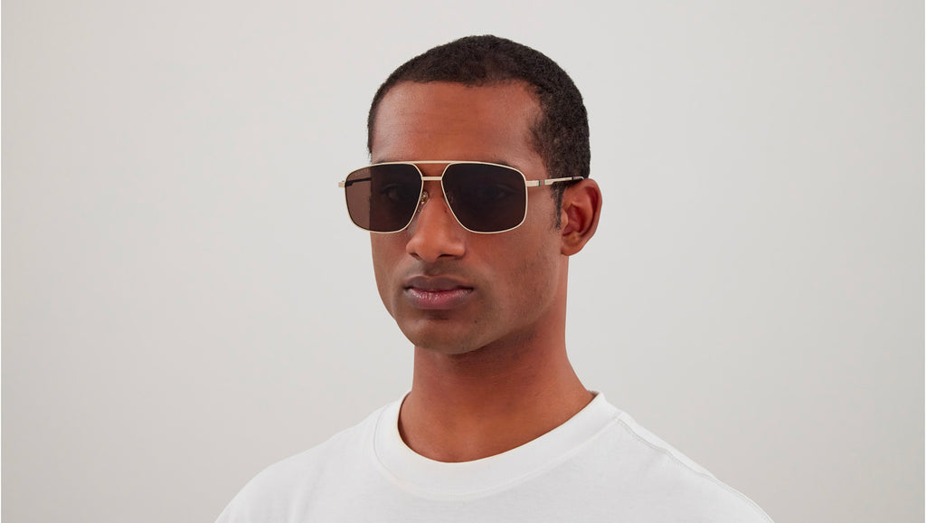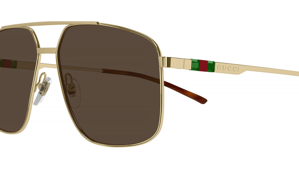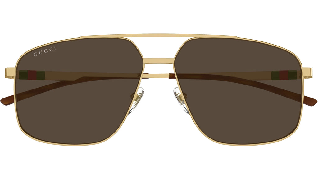 Occhiali da sole Gucci modello GG1676S linea Web in metallo forma aviatore codice colore 002 oro endura lucido con aste oro e lenti marrone tinta unita. Rivenditore autorizzato Gucci online. Gli occhiali vengono consegnati con custodia e accessori originali e sono coperti dalla garanzia ufficiale di 12 mesi del produttore.