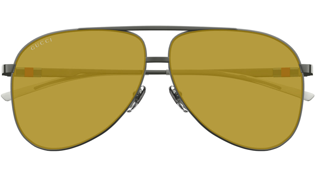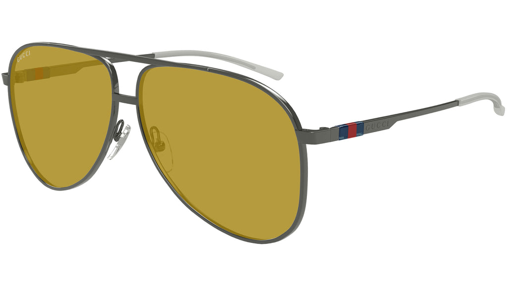 Occhiali da sole Gucci modello GG1677S linea Web in metallo forma aviatore codice colore 003 rutenio scuro lucido con aste rutenio e lenti beige nicotine tinta unita. Rivenditore autorizzato Gucci online. Gli occhiali vengono consegnati con custodia e accessori originali e sono coperti dalla garanzia ufficiale di 12 mesi del produttore.