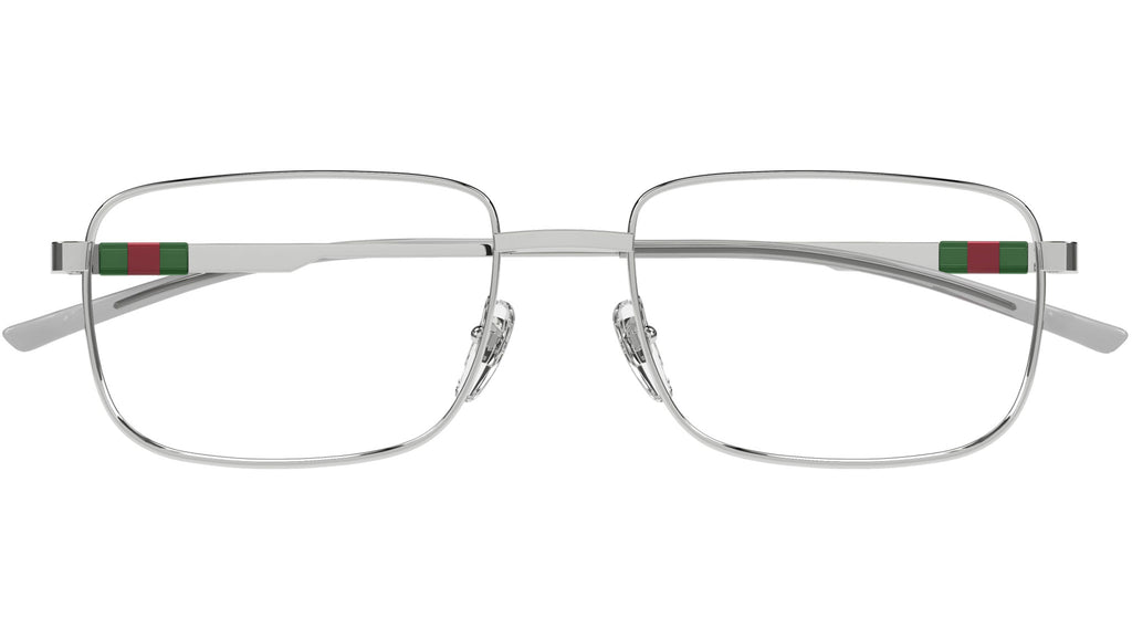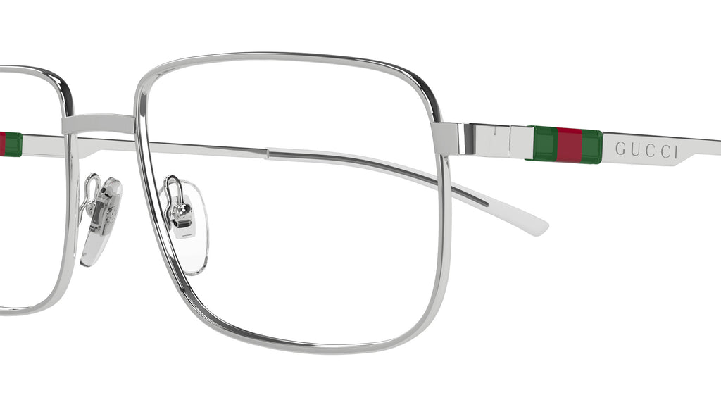Occhiali da vista Gucci modello GG1678O linea Web in metallo forma rettangolare argento lucido con aste in argento e lenti demo. Rivenditore autorizzato Gucci online. Gli occhiali vengono consegnati con custodia e accessori originali e sono coperti dalla garanzia ufficiale di 12 mesi del produttore.