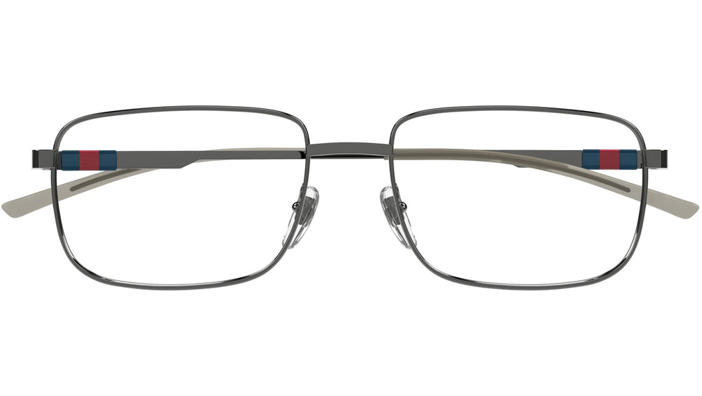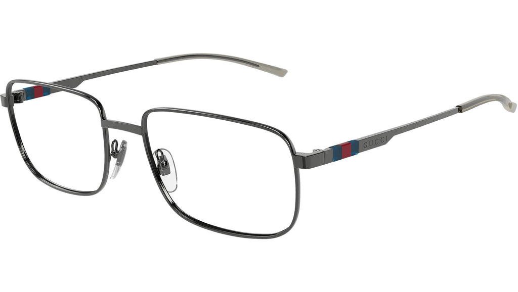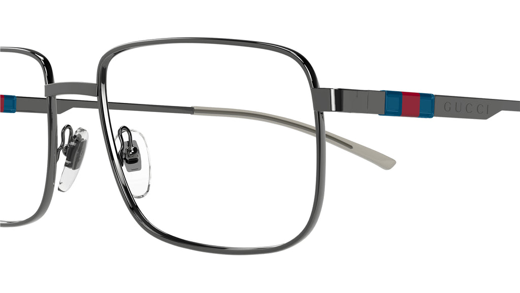 Occhiali da vista Gucci modello GG1678O linea Web in metallo forma rettangolare rutenio scuro lucido con aste in rutenio e lenti demo. Rivenditore autorizzato Gucci online. Gli occhiali vengono consegnati con custodia e accessori originali e sono coperti dalla garanzia ufficiale di 12 mesi del produttore.