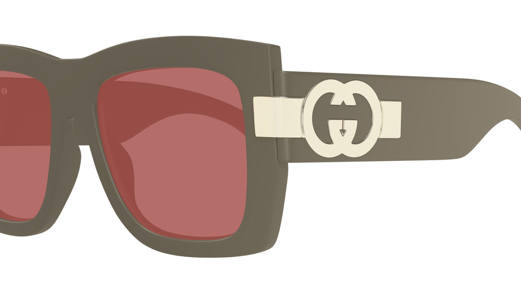 Occhiali da sole Gucci modello GG1688S linea GG Logo in iniettato forma rettangolare codice colore 004 grigio perla opaco con aste grigio e lenti bordeaux solido. Rivenditore autorizzato Gucci online. Gli occhiali vengono consegnati con custodia e accessori originali e sono coperti dalla garanzia ufficiale di 12 mesi del produttore.
