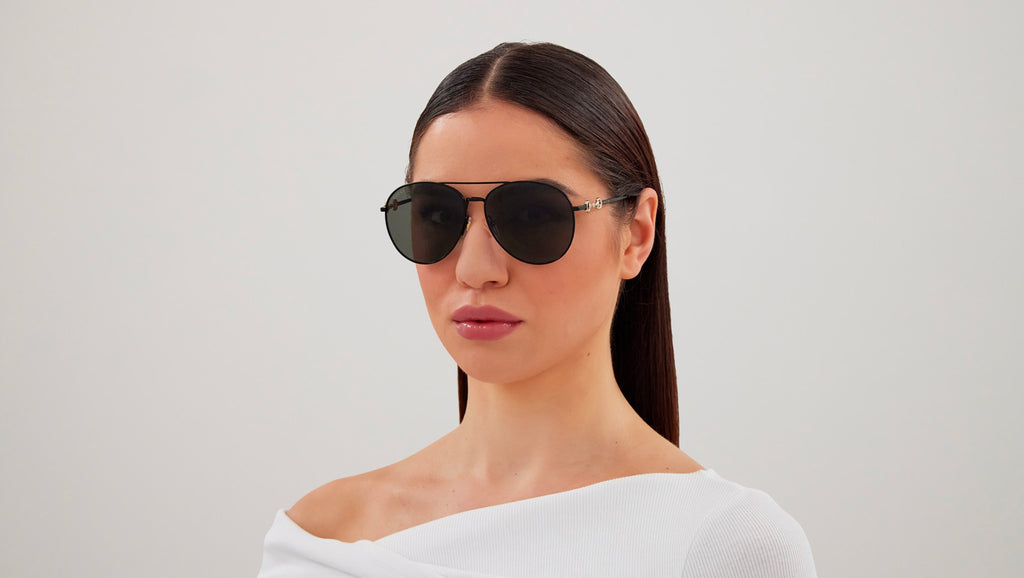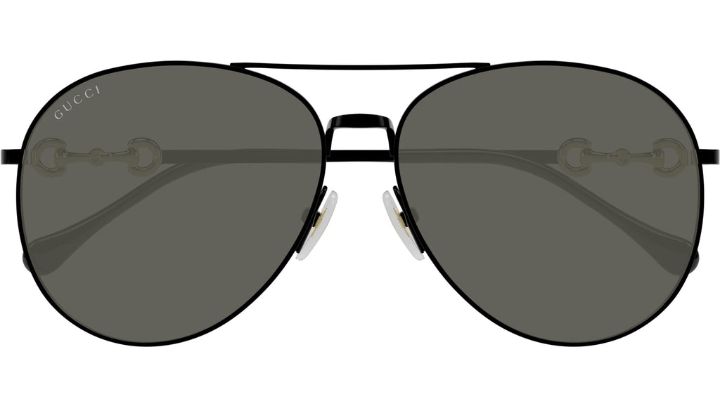 Occhiali da sole Gucci modello GG1698S linea Horsebit in metallo forma aviatore codice colore 001 nero lucido tinta unita con aste nero e lenti grigio tinta unita. Rivenditore autorizzato Gucci online. Gli occhiali vengono consegnati con custodia e accessori originali e sono coperti dalla garanzia ufficiale di 12 mesi del produttore.