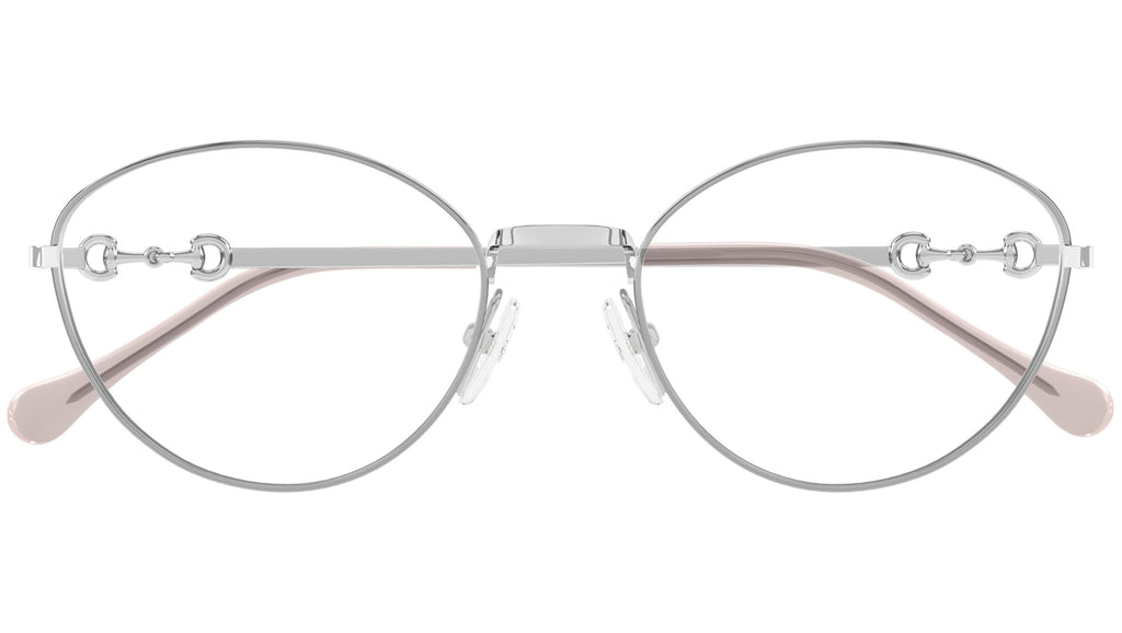 Occhiali da vista Gucci modello GG1699O linea Horsebit in metallo forma a gatto codice colore 004 argento lucido con aste in argento e lenti demo. Rivenditore autorizzato Gucci online. Gli occhiali vengono consegnati con custodia e accessori originali e sono coperti dalla garanzia ufficiale di 12 mesi del produttore.