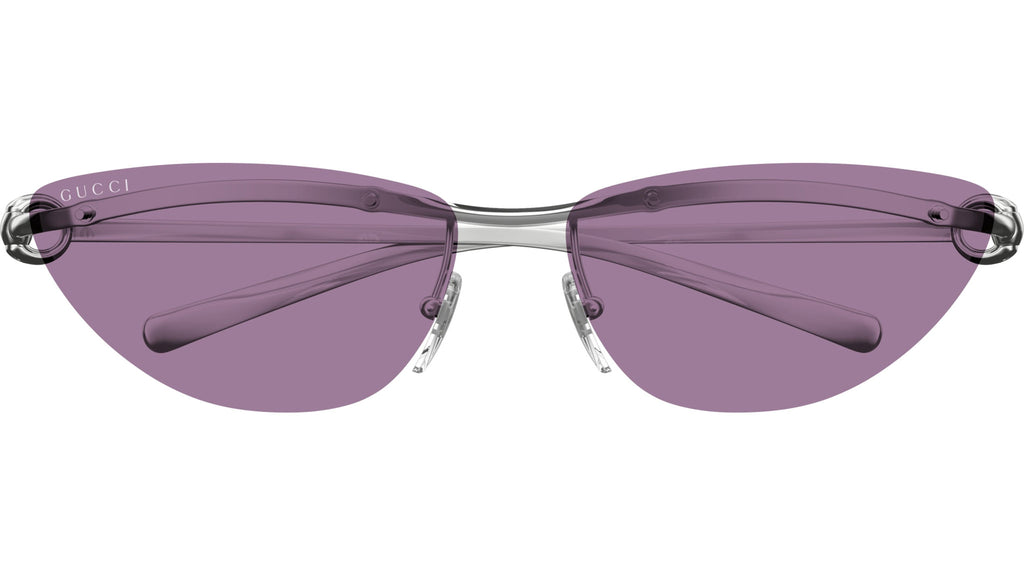 Occhiali da sole Gucci modello GG1701S linea Horsebit in metallo forma a gatto codice colore 003 argento lucido con aste argento e lenti viola solido + flash posteriore. Rivenditore autorizzato Gucci online. Gli occhiali vengono consegnati con custodia e accessori originali e sono coperti dalla garanzia ufficiale di 12 mesi del produttore.