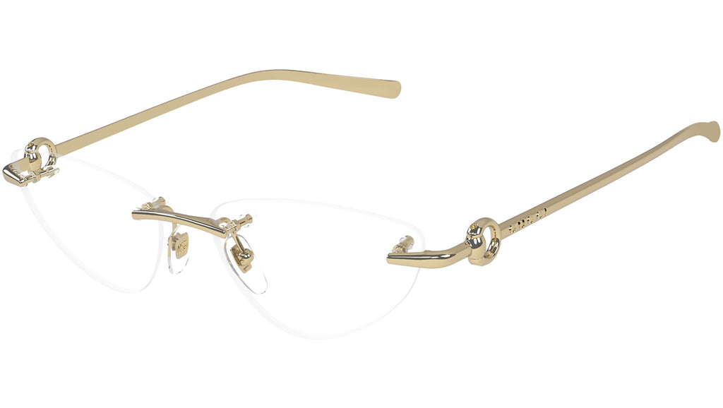 Occhiali da vista Gucci modello GG1702O linea Horsebit in metallo forma a gatto codice colore 002 oro endura lucido con aste in oro e lenti demo. Rivenditore autorizzato Gucci online. Gli occhiali vengono consegnati con custodia e accessori originali e sono coperti dalla garanzia ufficiale di 12 mesi del produttore.
