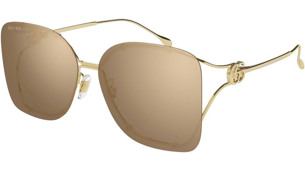Occhiali da sole Gucci modello GG1713SA linea Fork in metallo forma rettangolare codice colore 003 oro endura lucido con aste oro e lenti marrone chiaro solido + bronzo super. Rivenditore autorizzato Gucci online. Gli occhiali vengono consegnati con custodia e accessori originali e sono coperti dalla garanzia ufficiale di 12 mesi del produttore.