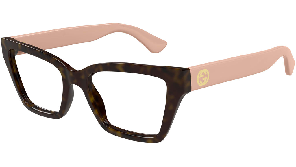 Occhiali da vista Gucci modello GG1715O linea GG Logo in iniettato forma a gatto codice colore 005 tartaruga scuro lucido con aste in rosa e lenti demo. Rivenditore autorizzato Gucci online. Gli occhiali vengono consegnati con custodia e accessori originali e sono coperti dalla garanzia ufficiale di 12 mesi del produttore.