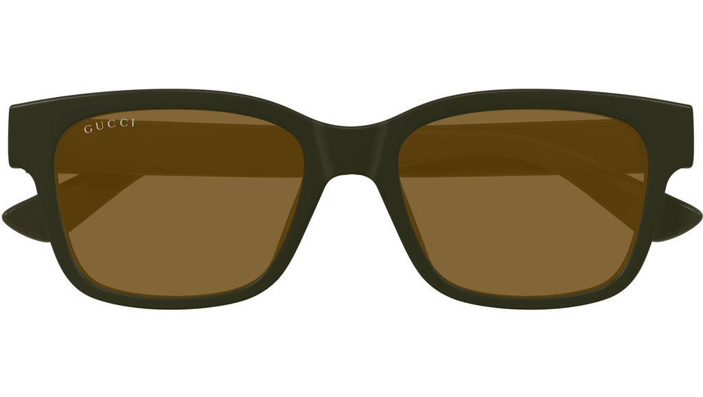 Occhiali da sole Gucci modello GG1716S linea Lettering in iniettato forma rettangolare codice colore 004 verde scuro tinta unita lucido con aste verde e lenti marrone tinta unita. Rivenditore autorizzato Gucci online. Gli occhiali vengono consegnati con custodia e accessori originali e sono coperti dalla garanzia ufficiale di 12 mesi del produttore.