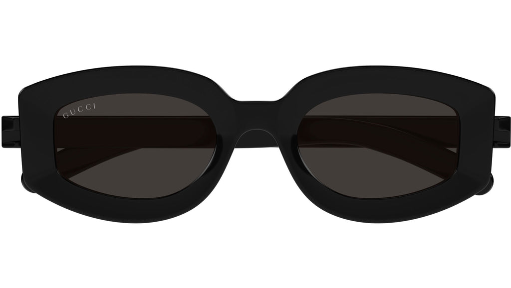 Occhiali da sole Gucci modello GG1719S linea Lettering in iniettato forma geometrica codice colore 001 nero lucido con aste nero e lenti grigio tinta unita. Rivenditore autorizzato Gucci online. Gli occhiali vengono consegnati con custodia e accessori originali e sono coperti dalla garanzia ufficiale di 12 mesi del produttore.