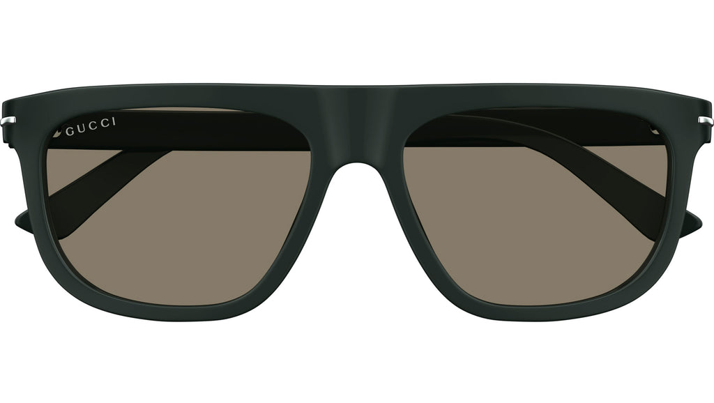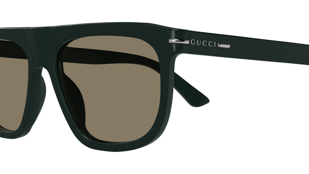 Occhiali da sole Gucci modello GG1726S linea Lettering in acetato riciclato forma pantos codice colore 004 verde scuro tinta unita lucido con aste verde e lenti marrone tinta unita. Rivenditore autorizzato Gucci online. Gli occhiali vengono consegnati con custodia e accessori originali e sono coperti dalla garanzia ufficiale di 12 mesi del produttore.