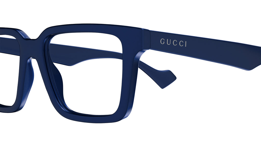 Occhiali da vista Gucci modello GG1729O linea Lettering in iniettato forma rettangolare blu scuro metallico lucido con aste in blu e lenti demo. Rivenditore autorizzato Gucci online. Gli occhiali vengono consegnati con custodia e accessori originali e sono coperti dalla garanzia ufficiale di 12 mesi del produttore.