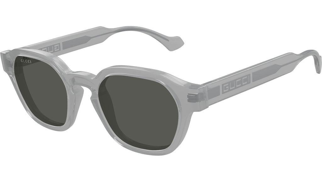 Occhiali da sole Gucci modello GG1730S linea Lettering in iniettato forma pantos codice colore 004 grigio nuvola trasparente lucido con aste grigio e lenti grigio tinta unita. Rivenditore autorizzato Gucci online. Gli occhiali vengono consegnati con custodia e accessori originali e sono coperti dalla garanzia ufficiale di 12 mesi del produttore.