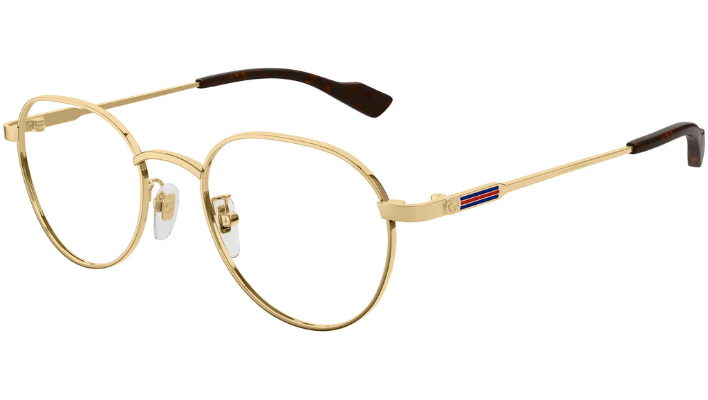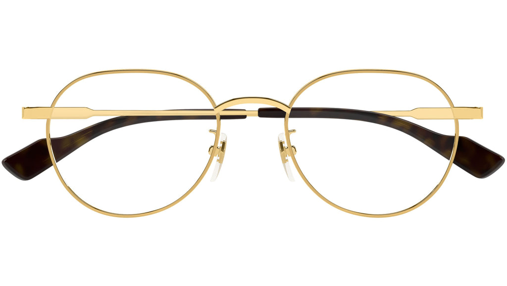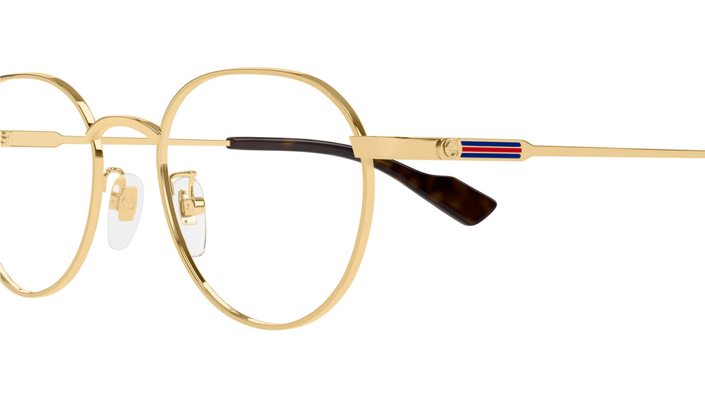 Occhiali da vista Gucci modello GG1747OA linea Lettering in metallo forma pantos codice colore 002 oro endura lucido con aste in oro e lenti demo. Rivenditore autorizzato Gucci online. Gli occhiali vengono consegnati con custodia e accessori originali e sono coperti dalla garanzia ufficiale di 12 mesi del produttore.