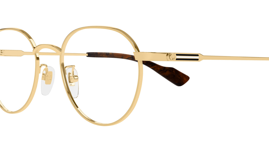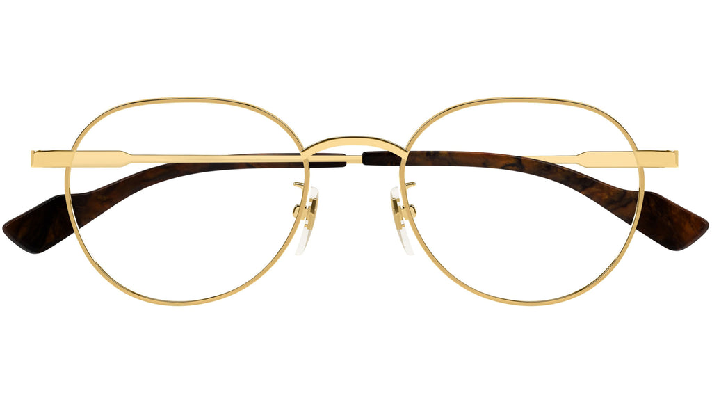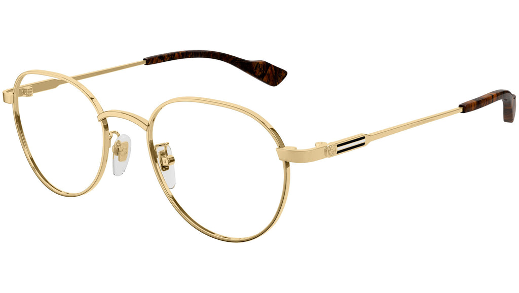 Occhiali da vista Gucci modello GG1747OA linea Lettering in metallo forma pantos codice colore 003 oro endura lucido con aste in oro e lenti demo. Rivenditore autorizzato Gucci online. Gli occhiali vengono consegnati con custodia e accessori originali e sono coperti dalla garanzia ufficiale di 12 mesi del produttore.