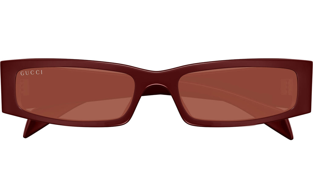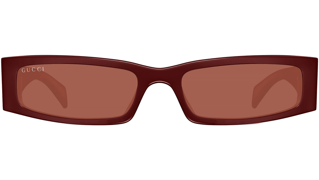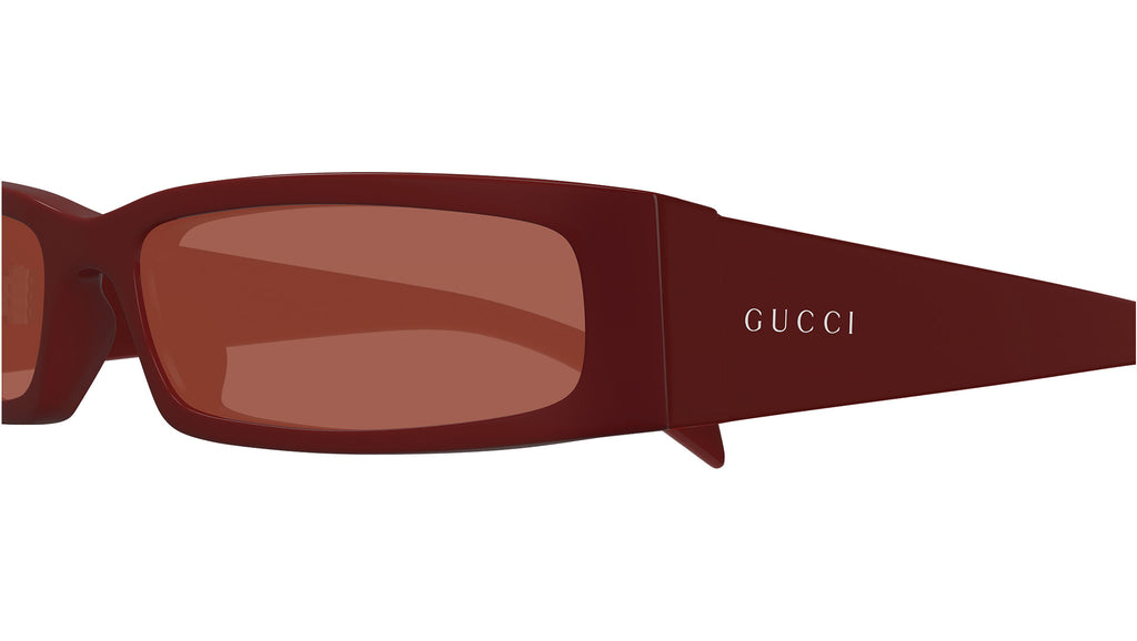 Occhiali da sole Gucci modello GG1778S linea Fashion in acetato riciclato forma rettangolare codice colore 003 bordeaux tinta unita lucido con aste rosso borgogna e lenti marrone caldo tinta unita. Rivenditore autorizzato Gucci online. Gli occhiali vengono consegnati con custodia e accessori originali e sono coperti dalla garanzia ufficiale di 12 mesi del produttore.