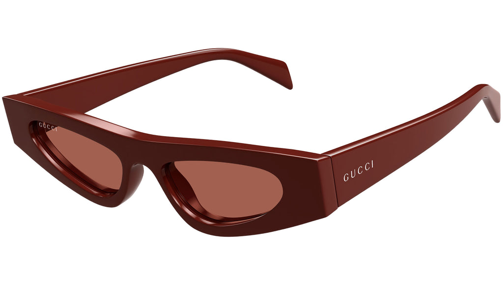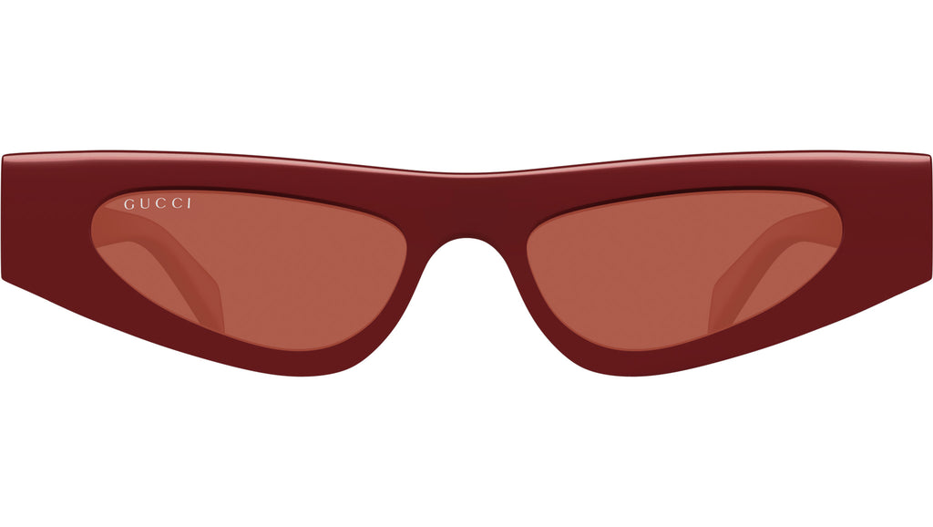 Occhiali da sole Gucci modello GG1779S linea Fashion in acetato riciclato forma a gatto codice colore 003 bordeaux tinta unita lucido con aste rosso borgogna e lenti marrone caldo tinta unita. Rivenditore autorizzato Gucci online. Gli occhiali vengono consegnati con custodia e accessori originali e sono coperti dalla garanzia ufficiale di 12 mesi del produttore.