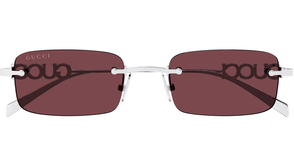 Occhiali da sole Gucci GG1808S 004 uomo con montatura rettangolare in metallo argento e lenti borgogna tinta unita. Linea: Lettering. Codice modello: GG1808S. Codice colore: 004. Made in Japan. Rivenditore autorizzato Gucci online. Gli occhiali vengono consegnati con custodia e accessori originali e sono coperti dalla garanzia ufficiale di 12 mesi del produttore.